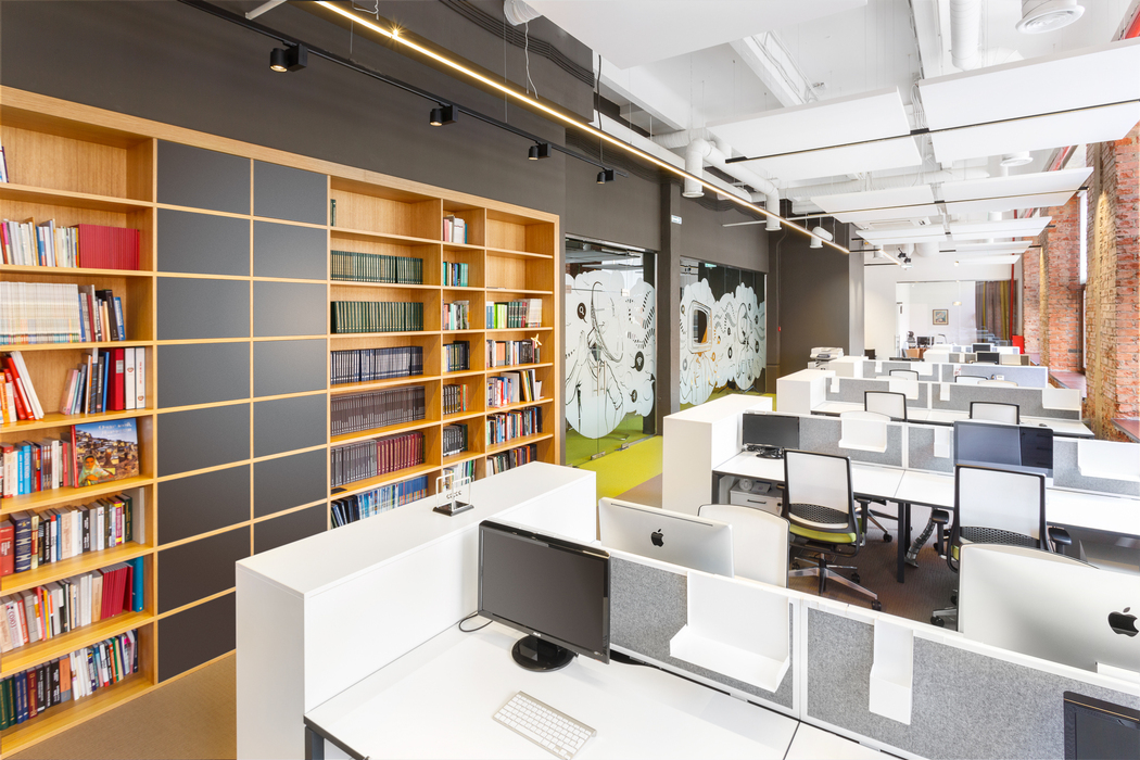 Группа ФОМ / Фонд Общественное Мнение работает в сфере социологических исследований и создания комплексных коммуникационных решений. Новый офис стал первым шагом ребрендинга компании и положил начало созданию открытой и эффективной рабочей среды. Наша бизнес-задача : Создать комфортные условия для работы и свободного, неформального общения внутри коллектива. Заказчик хотел, чтобы офис формировал корпоративную культуру компании – был интеллигентным и сдержанным, но при этом энергичным, свободным и оригинальным. Нужно было спроектировать рабочее пространство почти для 100 сотрудников, предусмотреть кабинеты руководителей, зал для лекций, 5 переговорных комнат, кухню, лаунж с барной стойкой, технические и складские помещения.